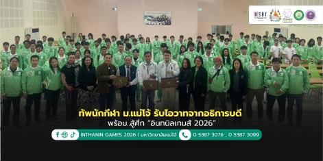 วันพฤหัสบดีที่ 8 มกราคม 2569 รองศาสตราจารย์ ดร.วีระพล ทองมา อธิการบดีมหาวิทยาลัยแม่โจ้ ให้กำลังใจและให้โอวาทแก่คณะนักกีฬามหาวิทยาลัยแม่โจ้ในการเข้าร่วมการแข่งขันกีฬามหาวิทยาลัยแห่งประเทศไทย ครั้งที่ 51 “อินทนิลเกมส์ 2026” ซึ่งในปีนี้ มหาวิทยาลัยแม่โจ้ในฐานะเจ้าภาพจัดการแข่งขัน ได้ส่งนักกีฬาเข้าร่วมแข่งขัน 26 ชนิดกีฬา มีนักกีฬาและเจ้าหน้าที่เข้าร่วม 347 คน ซึ่งนอกจากจะทำหน้าที่เป็นตัวแทนมหาวิทยาลัยเข้าร่วมแข่งขันแล้ว ยังจะเป็นเจ้าบ้านที่ดีร่วมต้อนรับทัพนักกีฬาจากสถาบันต่าง ๆ 109 สถาบันที...